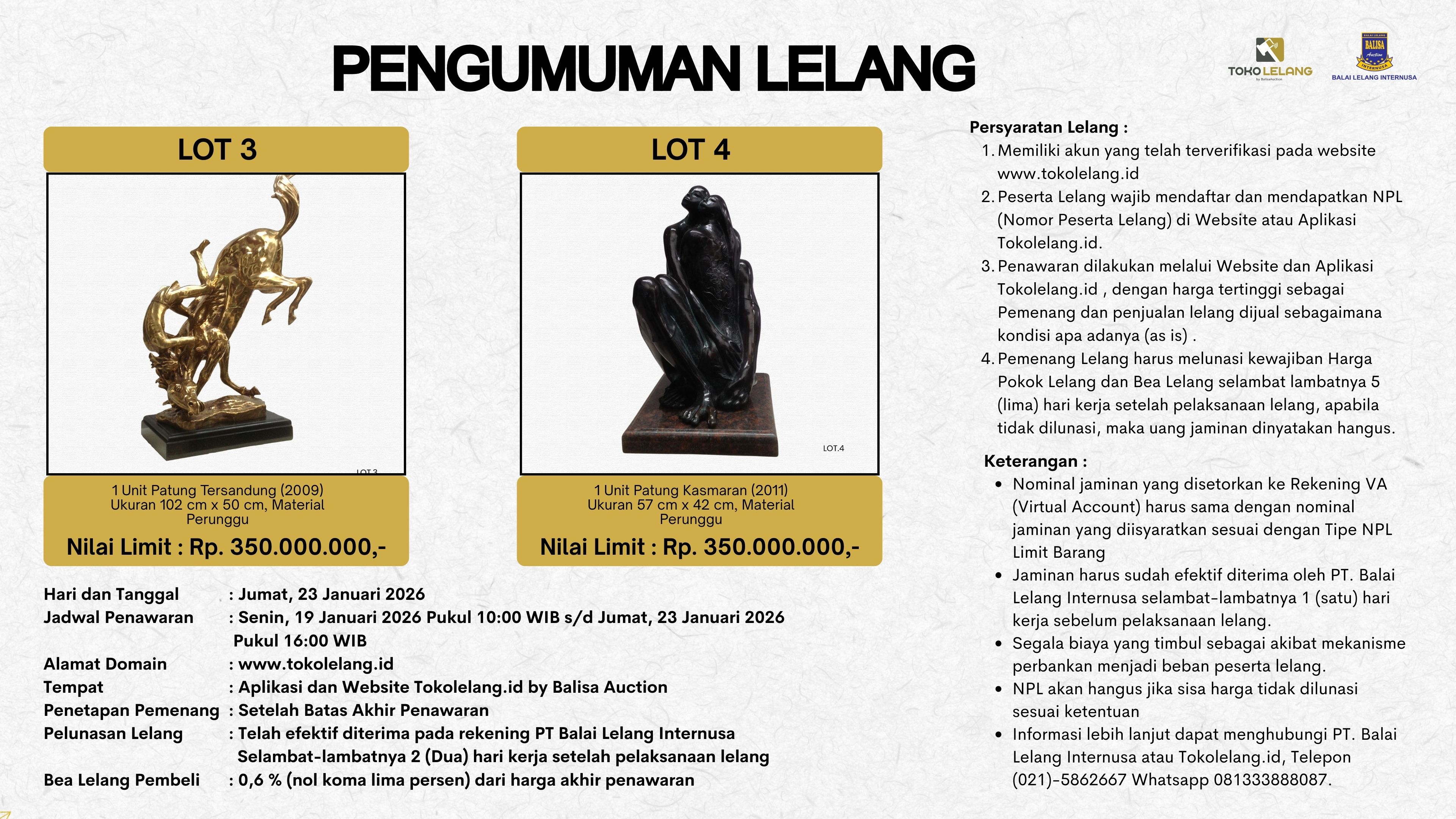 Pengumuman Lelang 23 Januari 2026