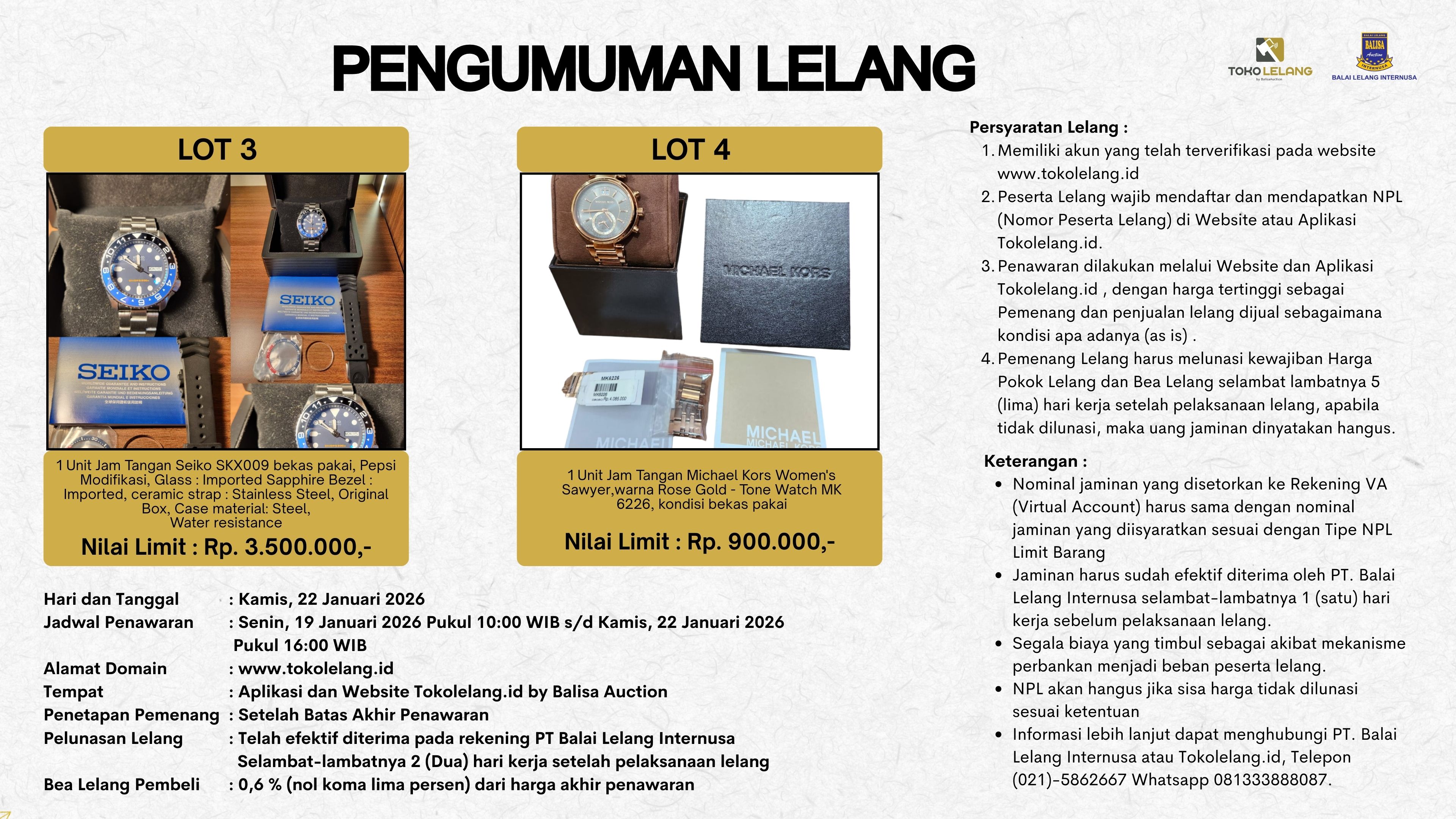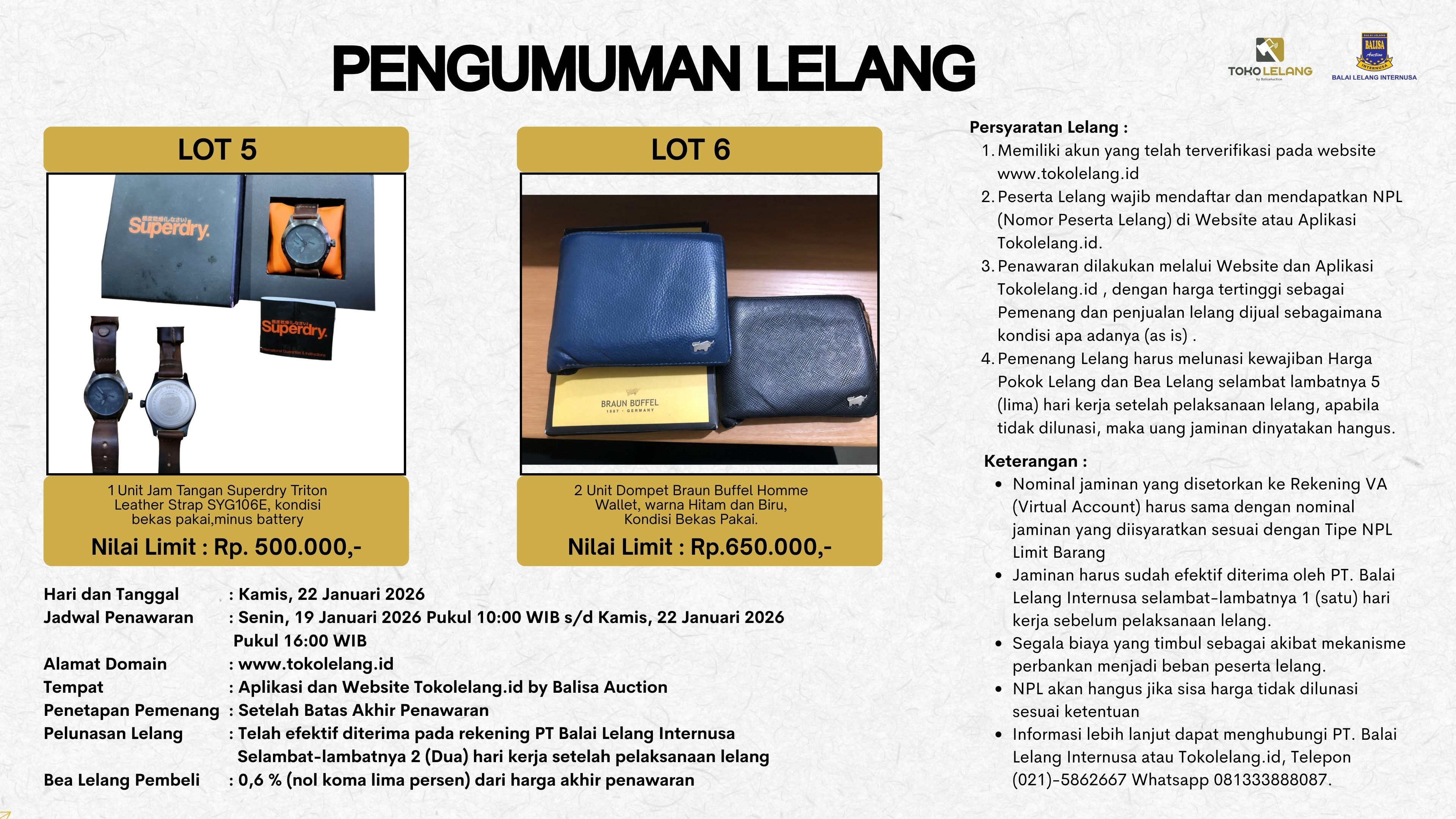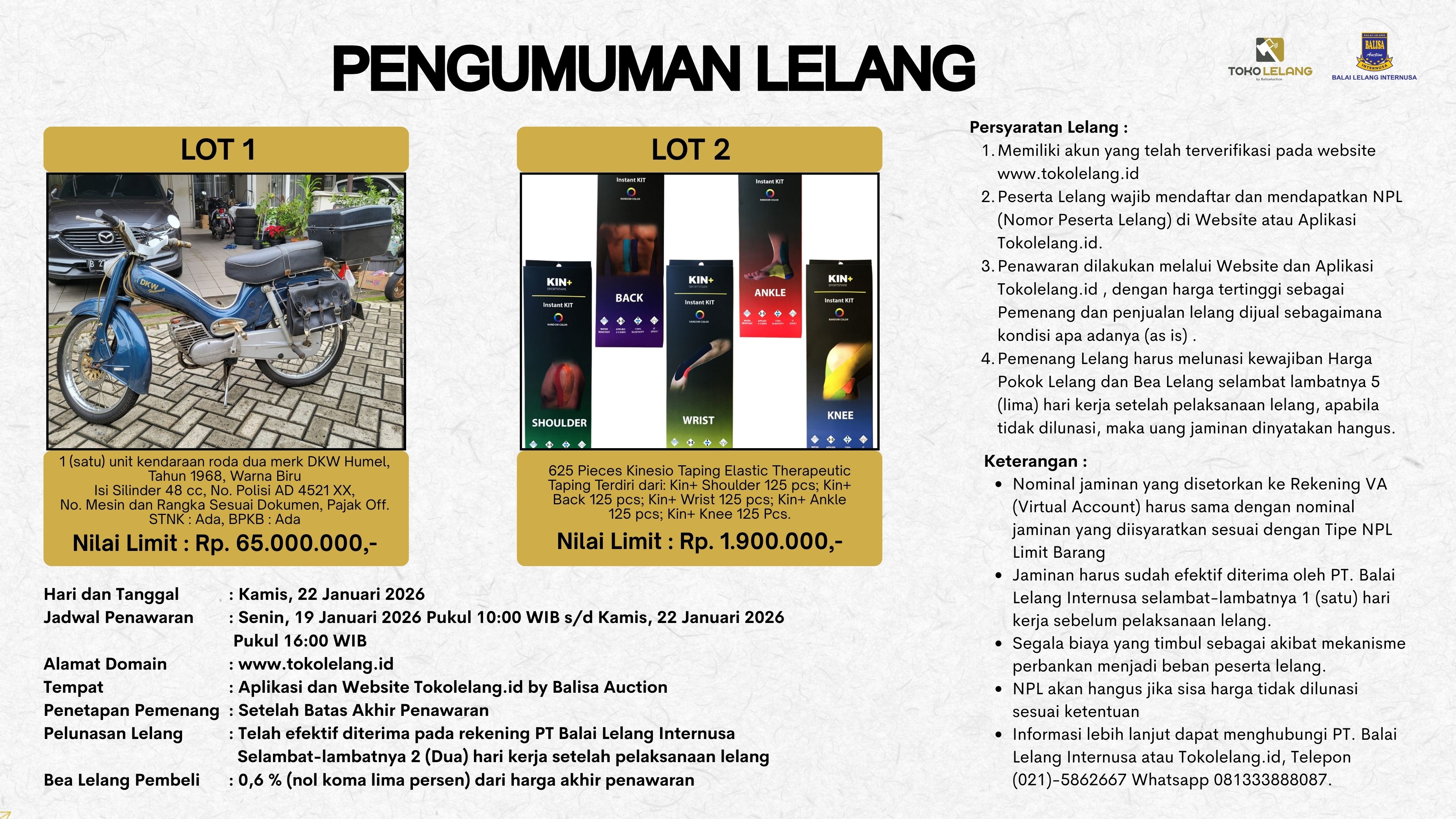 Pengumuman Lelang 22 Januari 2026