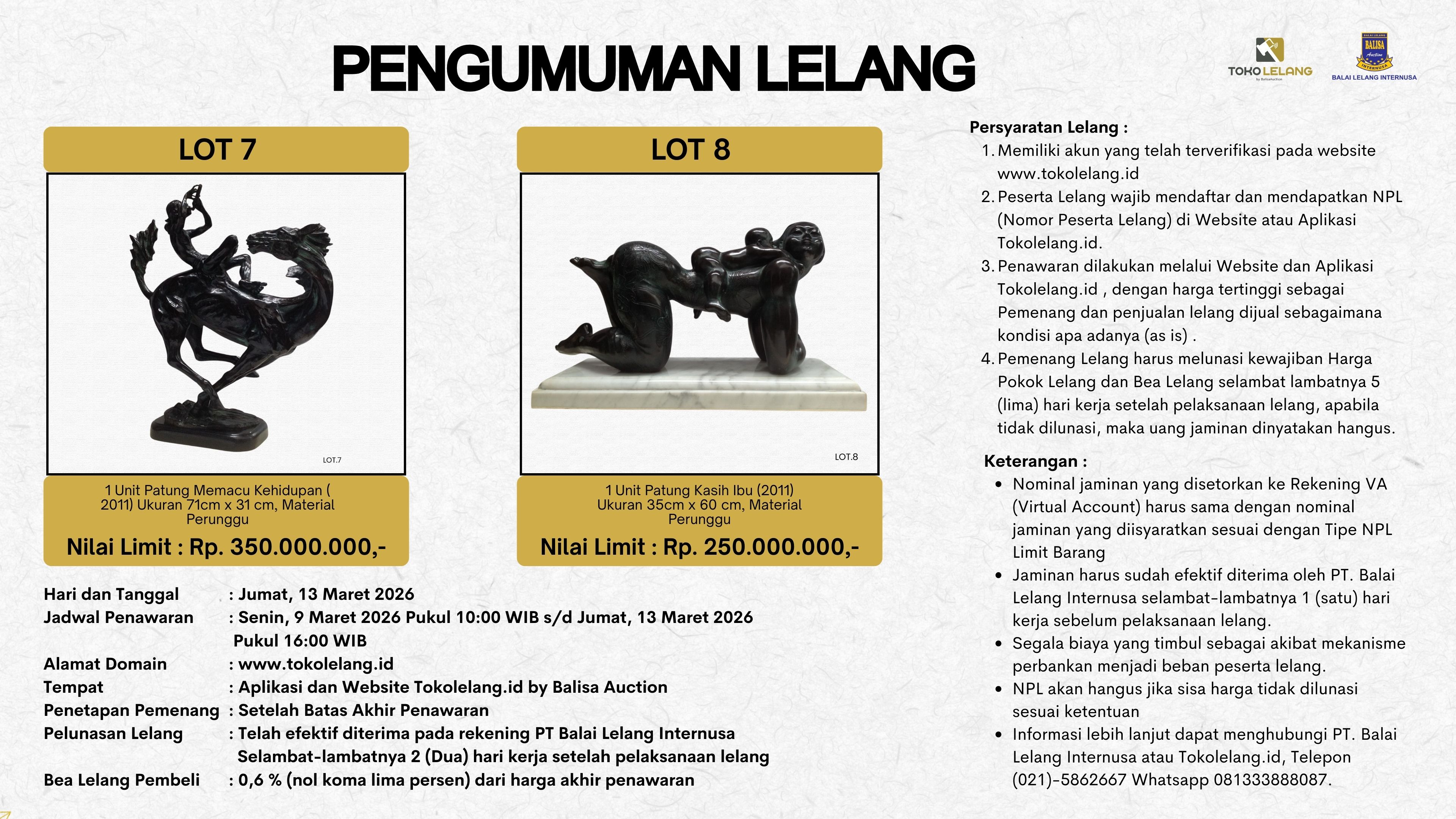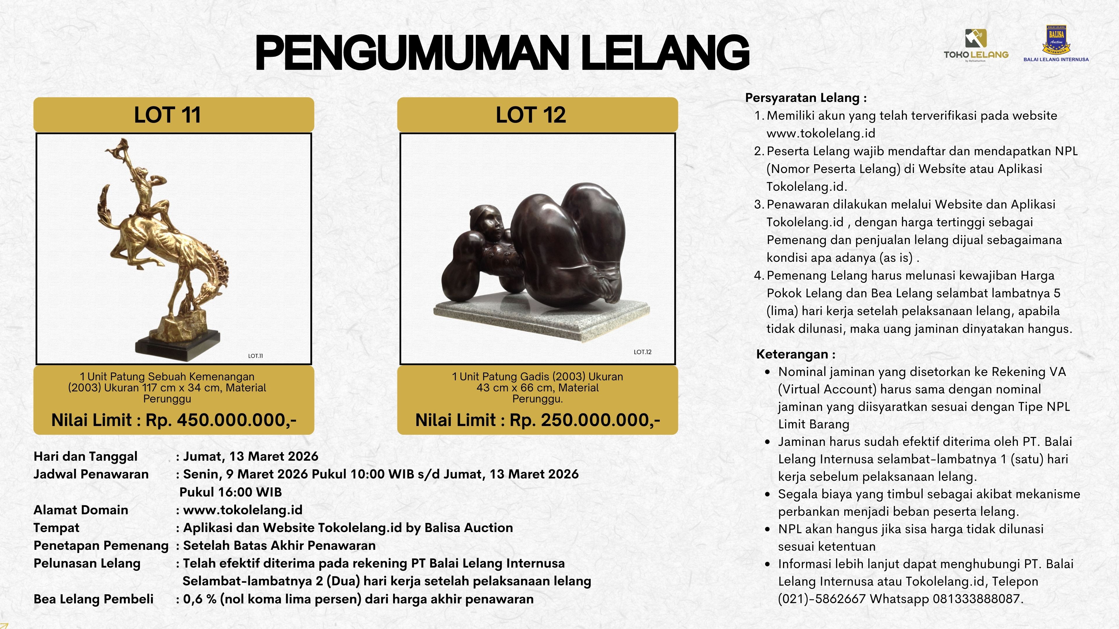 Pengumuman Lelang 9 - 12 Februari 2026.
